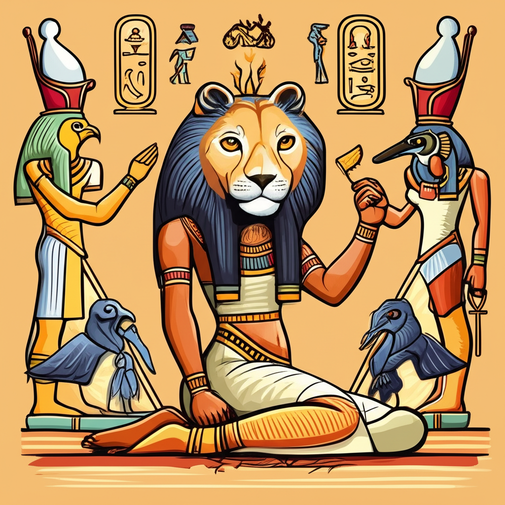 Sekhmet, whose name translates to "The Powerful One" or "She Who is Powerful," is depicted as a fierce lion-headed goddess. She is often portrayed wearing a solar disk, representing her connection to Ra, the sun god, and the Uraeus serpent, symbolizing her royal status. Sekhmet is a complex figure embodying both destructive and protective qualities.