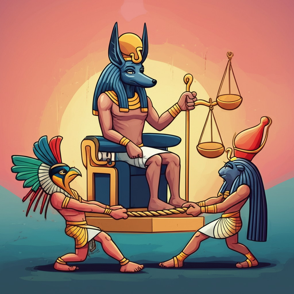 One of the most iconic depictions of Anubis’s role, though often associated with Osiris, is in the weighing of the heart ceremony. In the judgment of the dead, the deceased’s heart was placed on one side of a great scale, and on the other, the feather of Ma’at, the goddess of truth, justice, and cosmic order. Anubis, the meticulous record-keeper and guardian of this sacred rite, would ensure the accuracy of the weighing. If the heart was lighter than the feather, signifying a life lived in accordance with Ma’at, the deceased was granted passage to the afterlife. If heavier, it was devoured by the monstrous Ammit, a creature of composite form representing divine retribution. While this scene is most directly tied to the afterlife of individuals, it reflects the fundamental principle of balance and justice that Anubis represented, a principle that would have been seen as crucial in resolving the larger disputes between Horus and Set. His presence in the Contendings, even if not always explicitly detailed in every retelling, underscores the underlying principle of divine justice that the gods were striving to uphold.